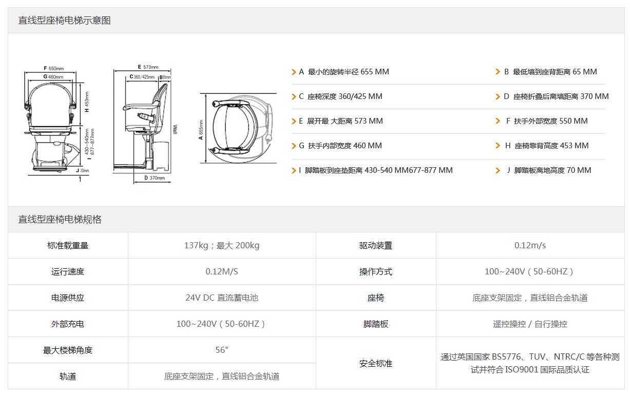 直線型斜掛座椅電梯